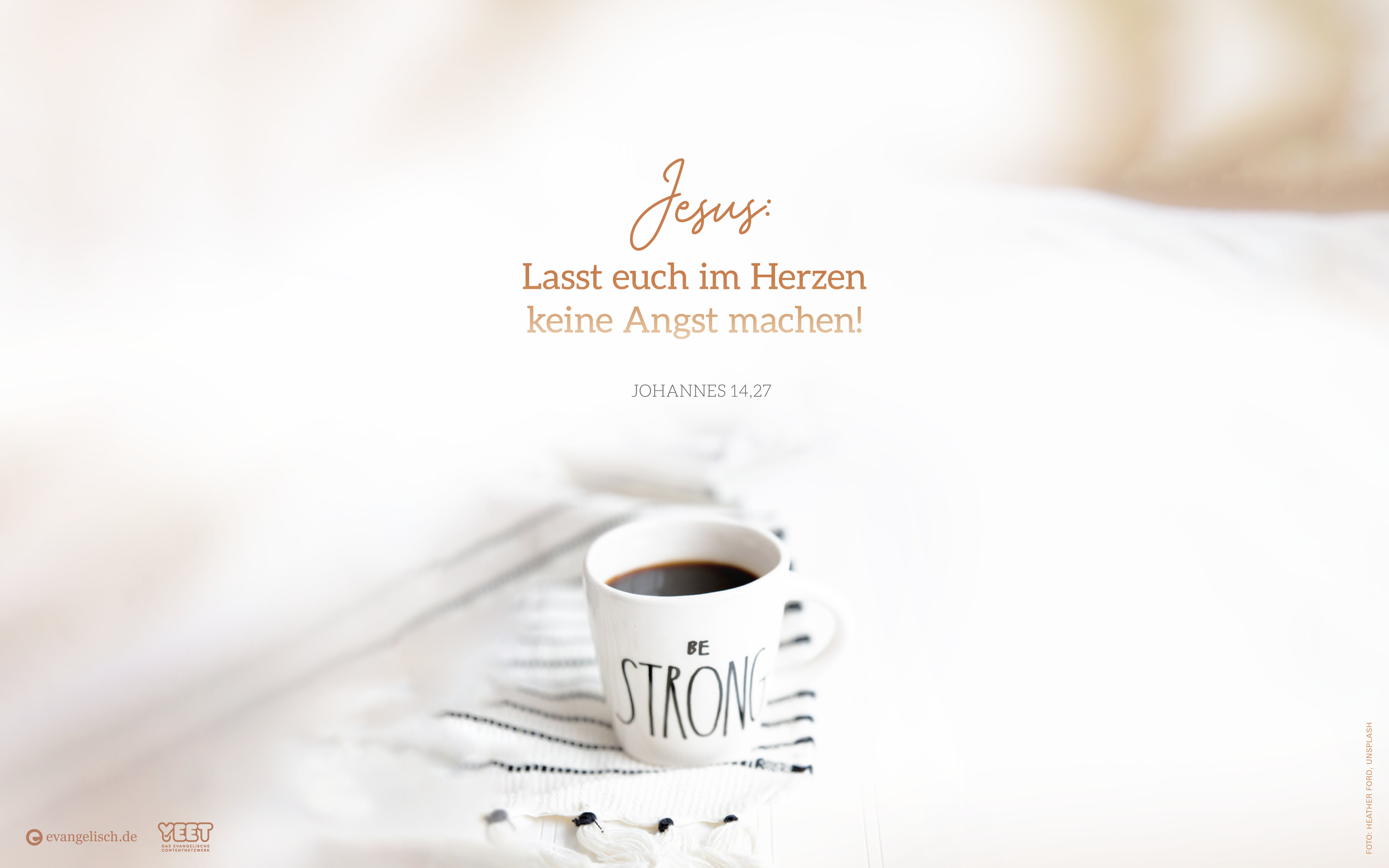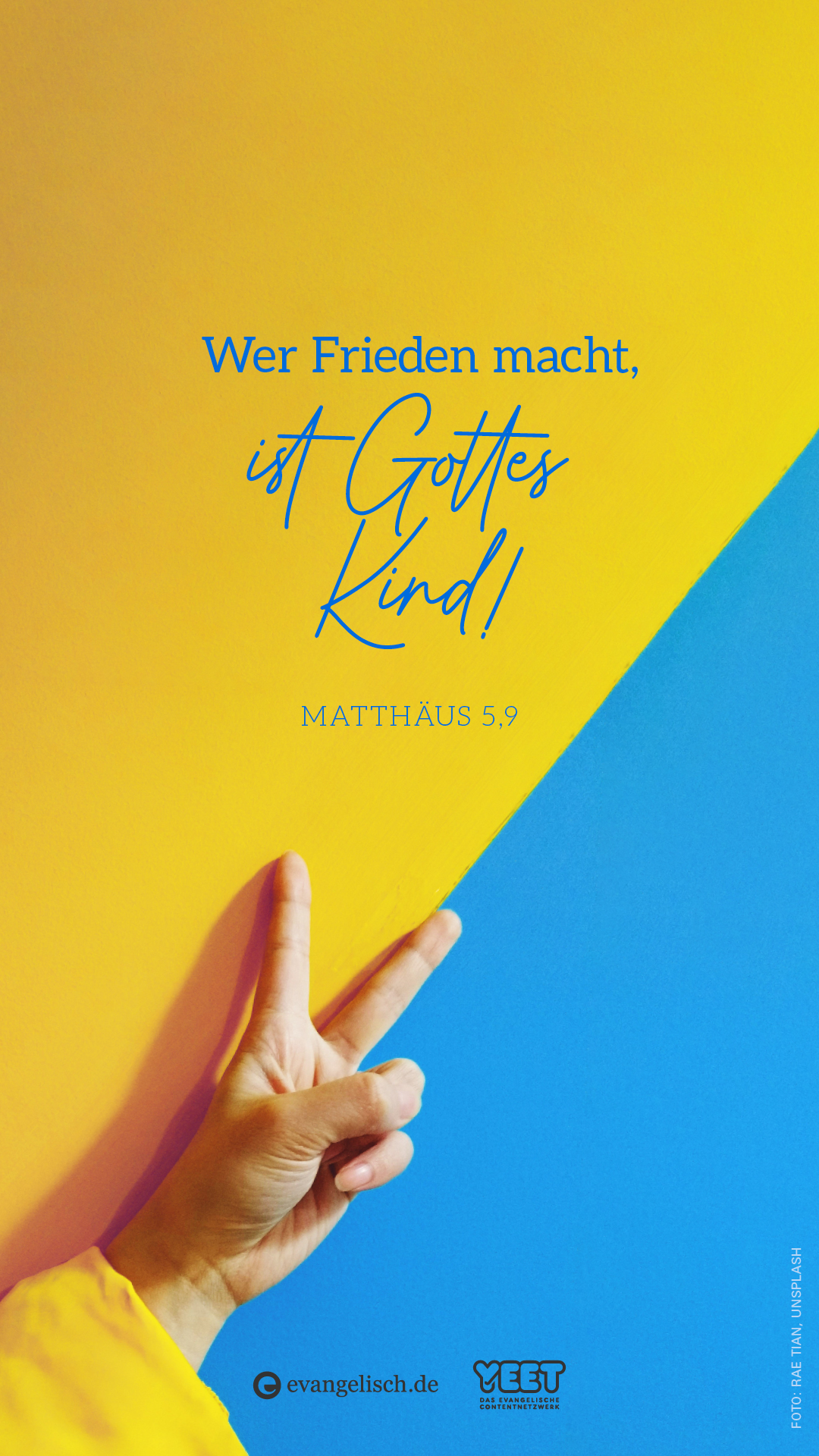 evangelisch.de und yeet bieten mutmachende Sprüche für den Frieden aus der Bibel für den Bildschirm und fürs Smartphone zum Download an.